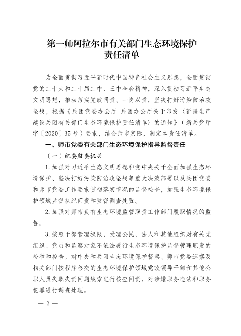 索引号: 000000000-2025-00081 发布机构: 生成日期: 2025-10-10 废止日期: 文 号: 主题分类: 权责清单 关键词: 《第一师阿拉尔市有关部门生态环境保护责任清单》 【打印正文】 【字体:小 大】