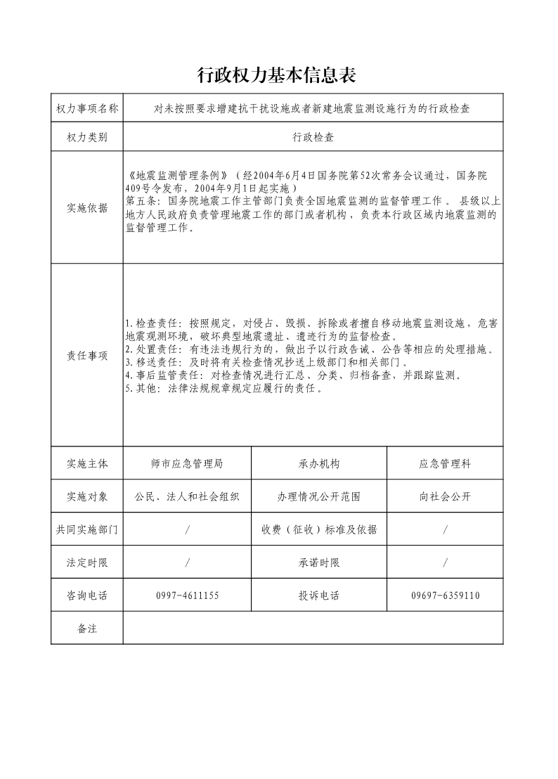 对未按照要求增建抗干扰设施或者新建地震监测设施行为的行政检查