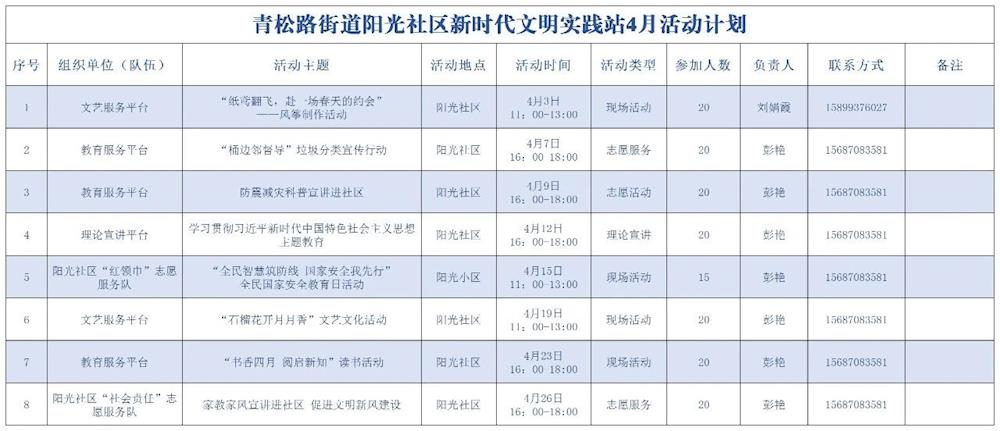 新时代文明实践 | 青松路街道4月份新时代文明实践活动计划来啦~