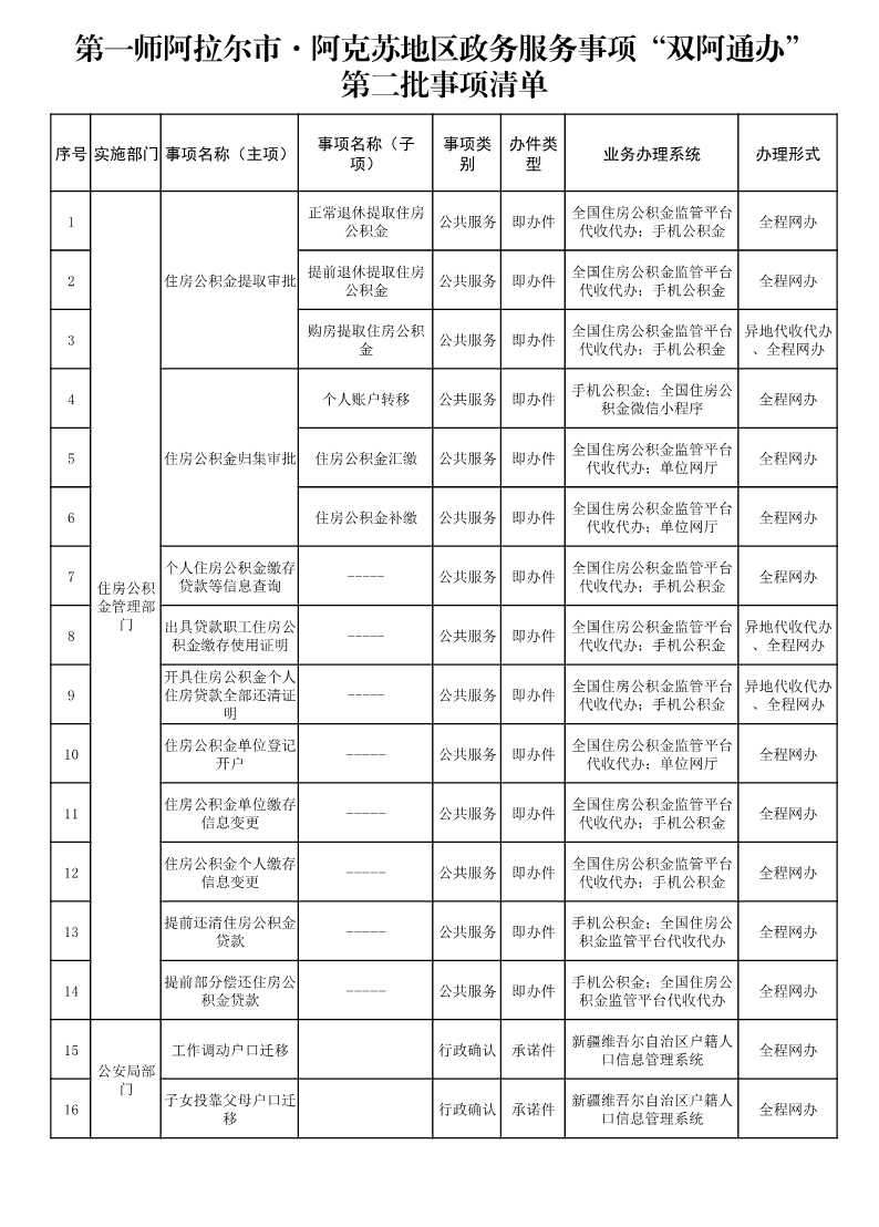 关于公布《第一师阿拉尔市·阿克苏地区政务 服务“双阿通办”第二批事项清单》的通告