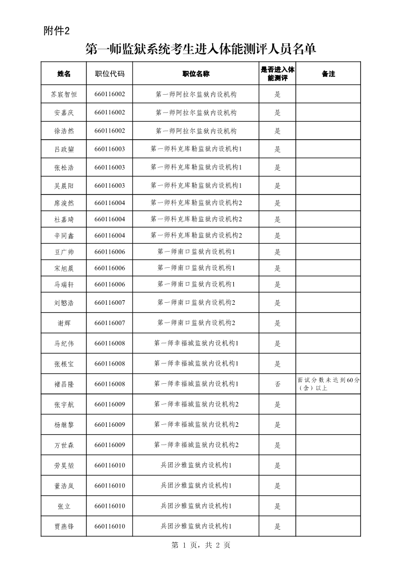2.报考第一师监狱系统考生进入体能测评人员名单(详见附件2)。