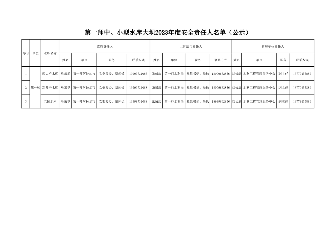 第一师中、小型水库大坝2023年度安全责任人名单(公示)