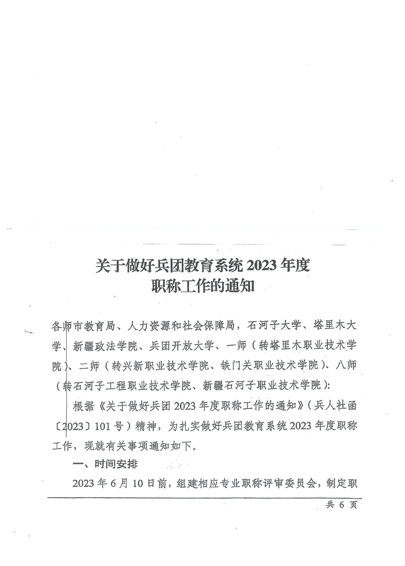 关于做好兵团教育系统2023年度职称评审工作的通知